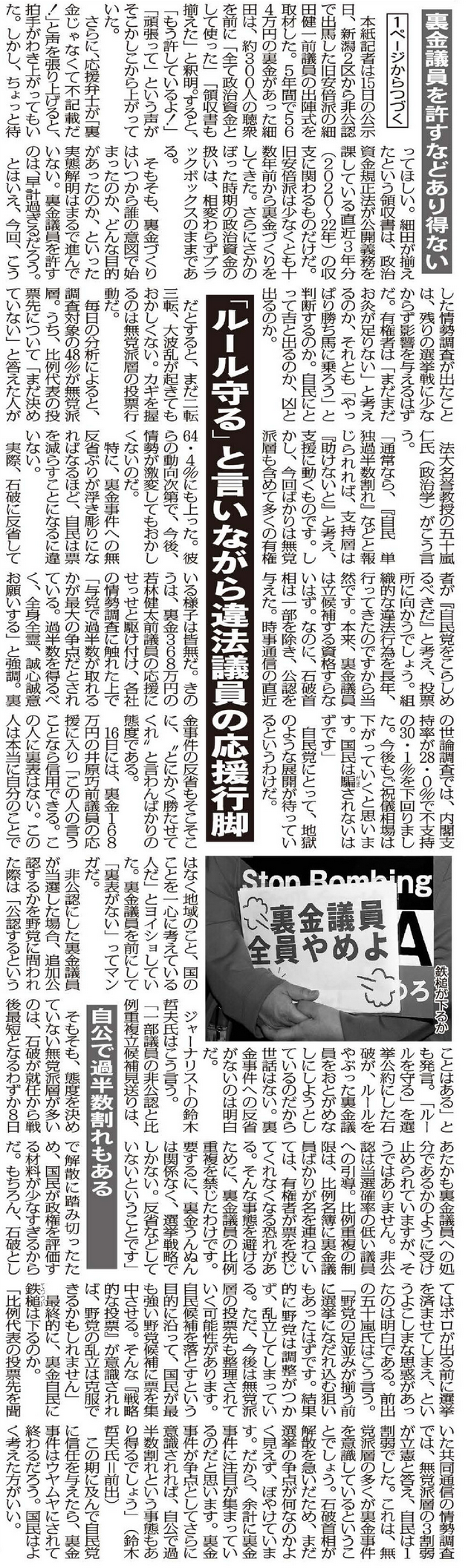 ※2024年10月18日 日刊ゲンダイ1面 紙面リック拡大 文字お越し