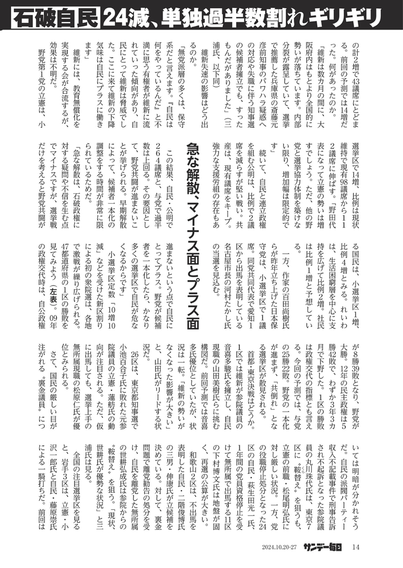※サンデー毎日 2024年10月20・27日合併号 各誌面クリック拡大