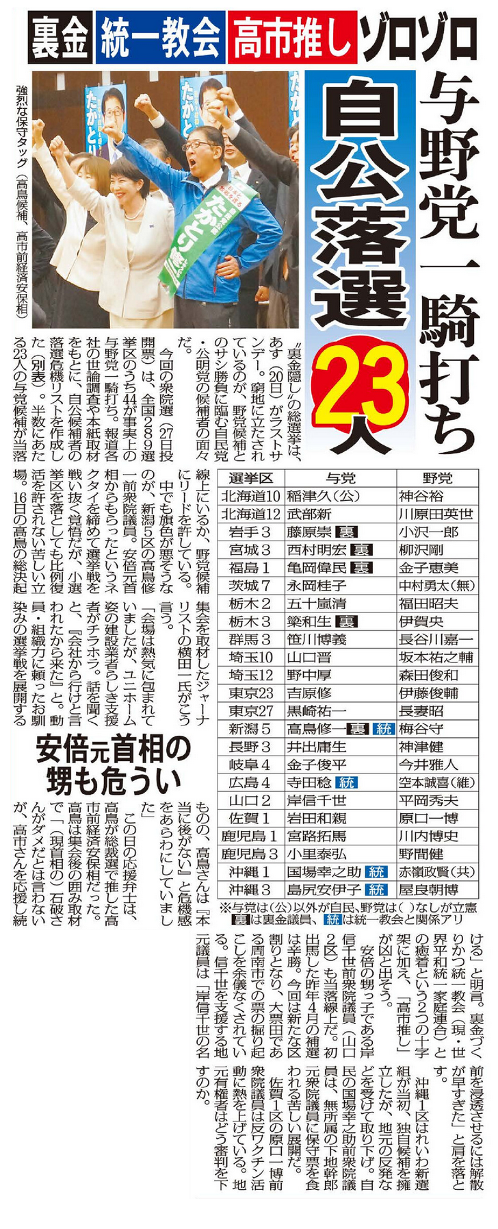 裏金、旧統一教会、高市推しが「凶」に