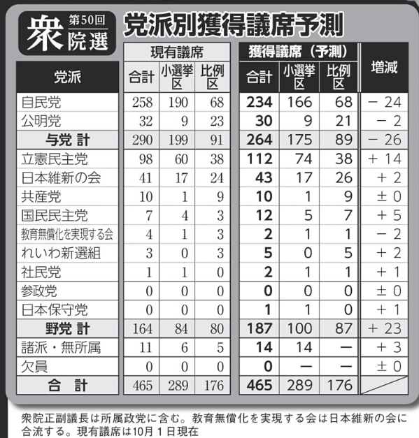 与野党一騎打ち「自公落選危機」は23人!