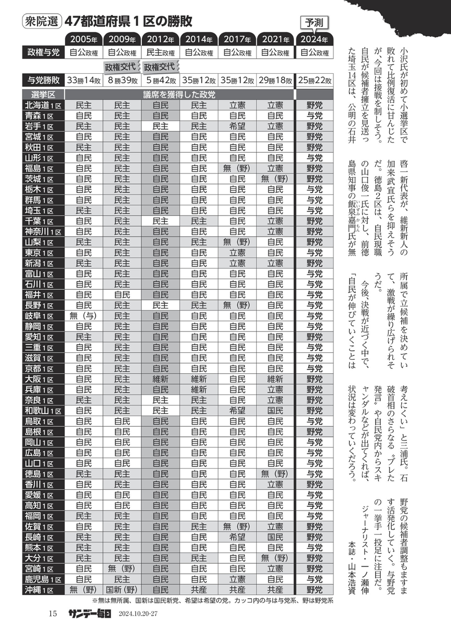 野党一本化進まず「共倒れ」 1区対決は与党25勝22敗