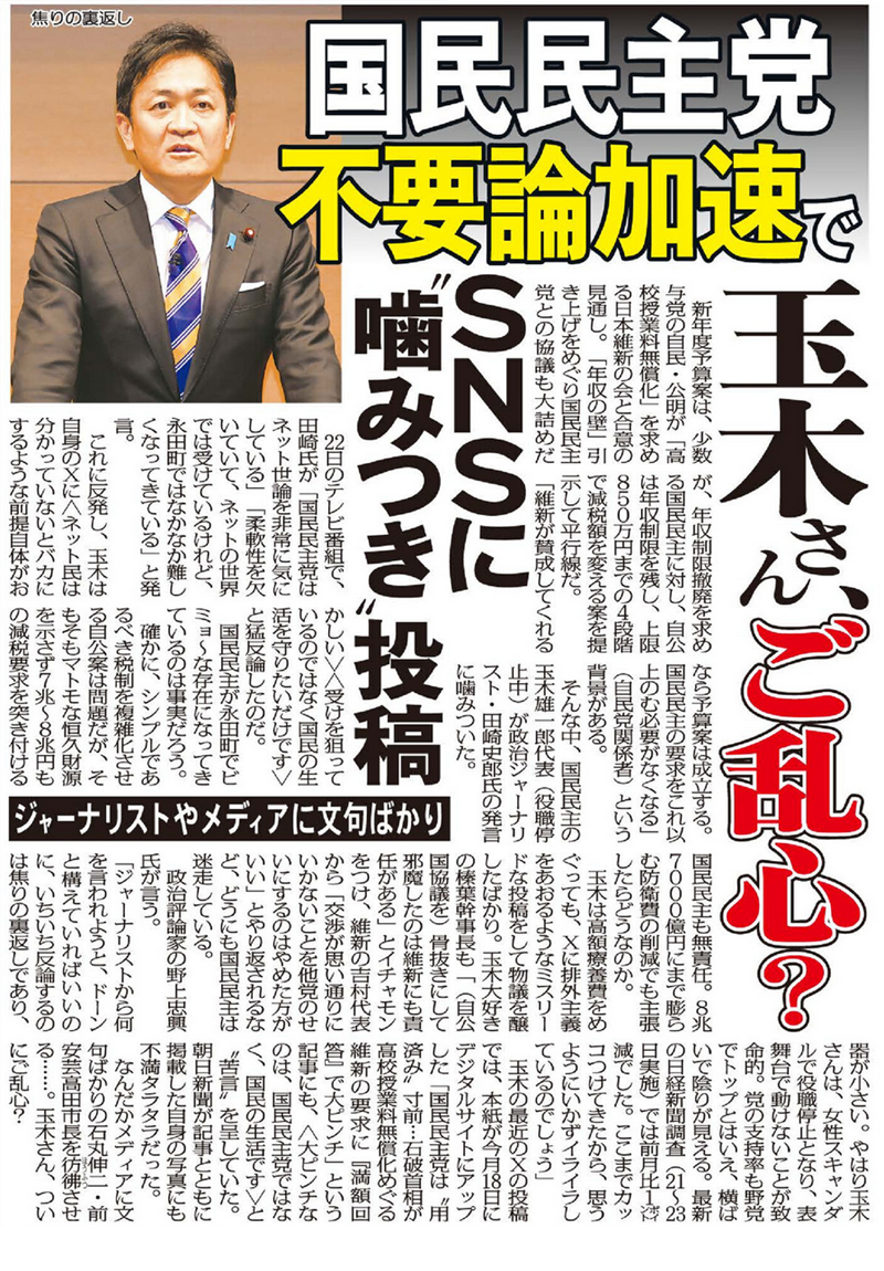 そんな中、玉木代表がSNSに“噛みつき”投稿。