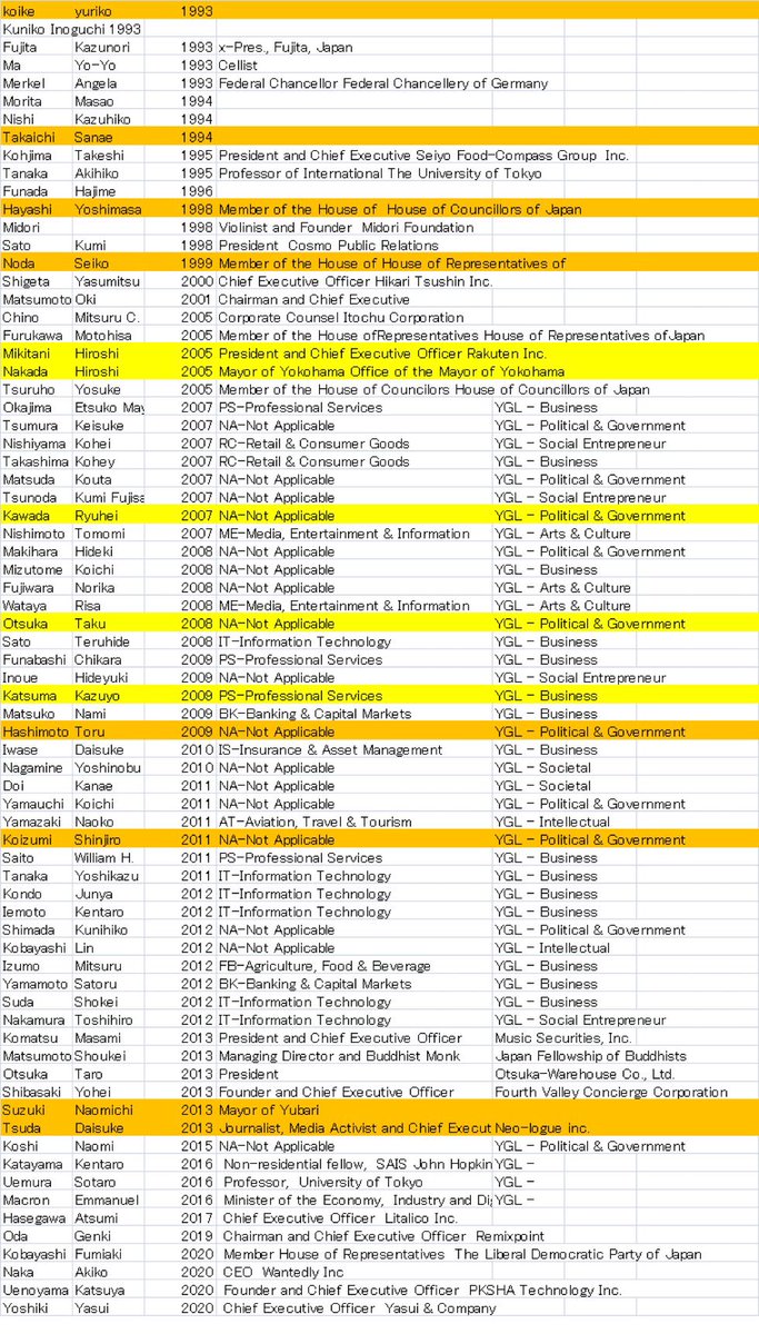 「ヤング・グローバル・リーダーズ 表彰者リスト