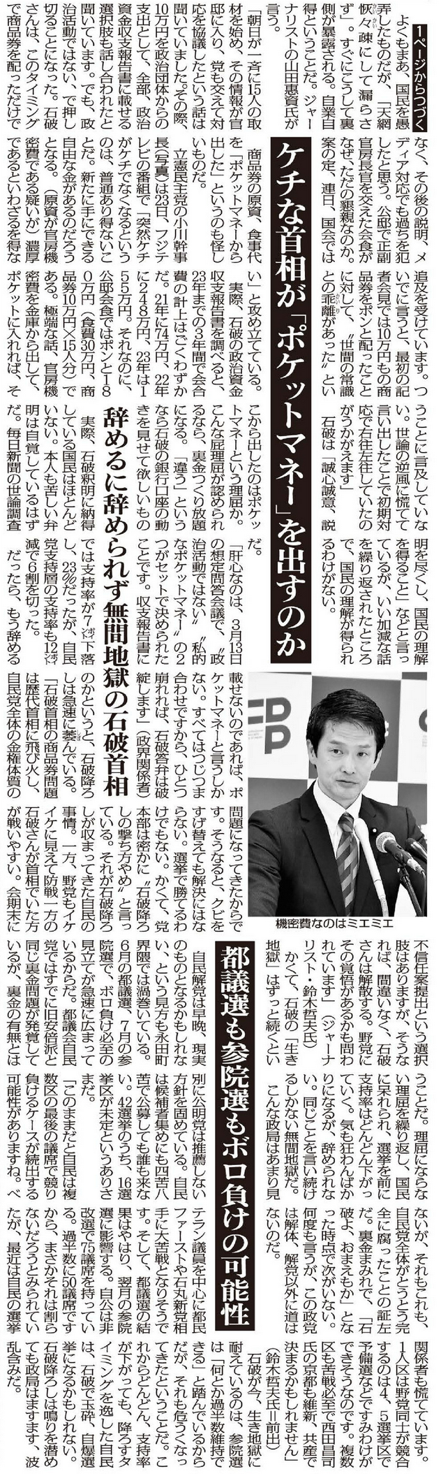 ※2025年3月24日 日刊ゲンダイ1面 紙面クリック拡大 文字お越し