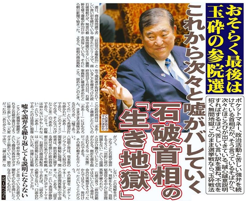 おそらく最後は玉砕の参院選 これから次々と嘘がバレていく石破首相の「生き地獄」