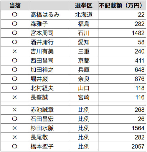 みどりといのちのネットワーク、エイズ根絶性病撲滅国民運動太陽新党、老人福祉党、道州制推進会議、MPD・平和と民主運動、緑の党、教育党、日本青年社、自由民主党、福祉党、サラリーマン新党、原発いらない人びと、二院クラブ、公明党、雑民党、民社党、国会議員を半分に減らす会、世直し党、→