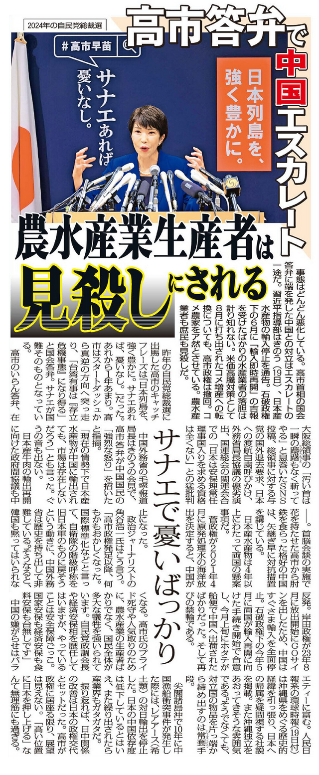 高市首相のいらん答弁で中国の怒りエスカレート…