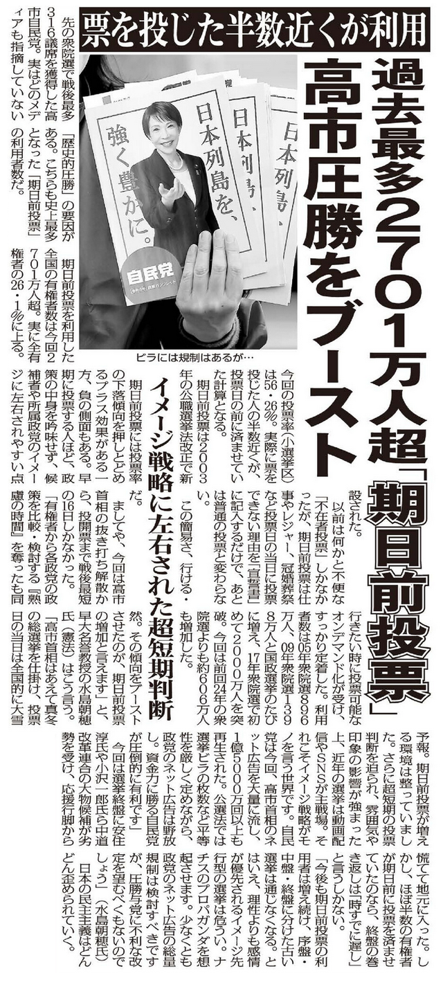 1141d8a6dc276d7a13f1cc0ccdfdc9d121d高市自民圧勝をブーストした「期日前投票」の功罪