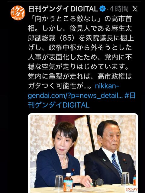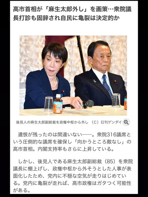 【政治】高市首相が「麻生太郎外し」を画策…
