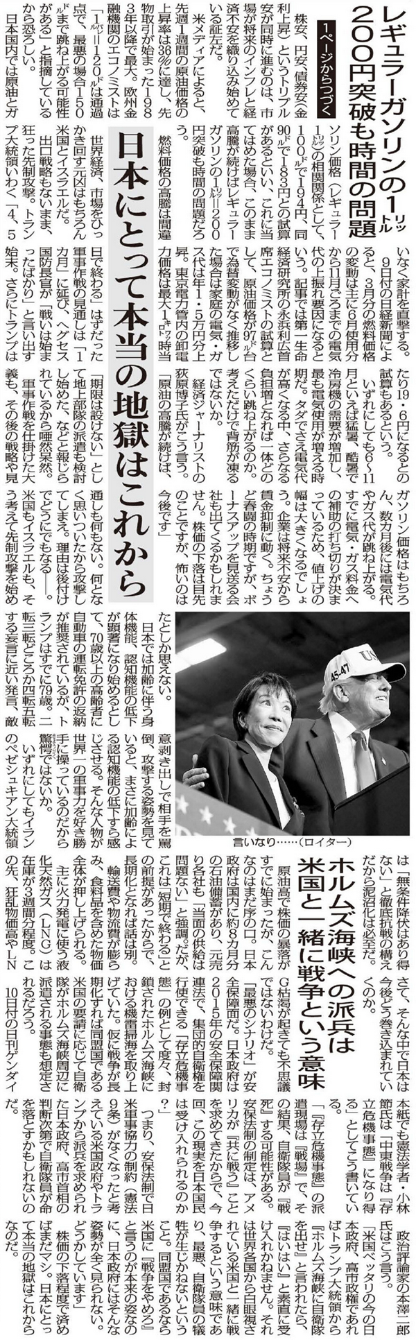 ※2026年3月10日 日刊ゲンダイ1面 紙面クリック拡大