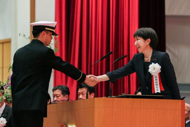 防衛大学卒業式でしっかり握手して祝う高市首相