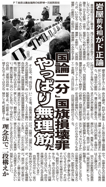 「外国国章損壊罪と同列はおかしい」 https://sankei.com/article/20260331-MJDX6RST2JGDPNUAJPL37IS2MQ/