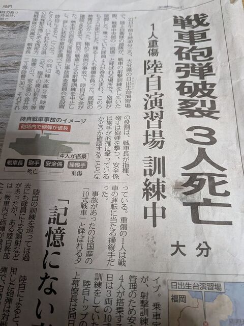 自衛隊員、3人戦車出爆死、1人負傷。