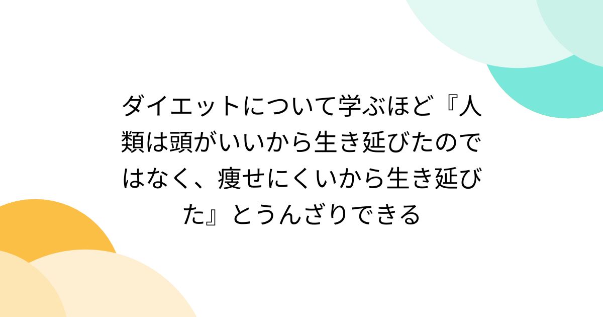 ダイエットに関して勉強すればするほど「なるほど、人類は頭がいいから生き延びたのではなく、極端に痩せにくい(省エネでよほどのことがない限り餓死しない)から生き残ったのだ」と感動と共にウンザリできる