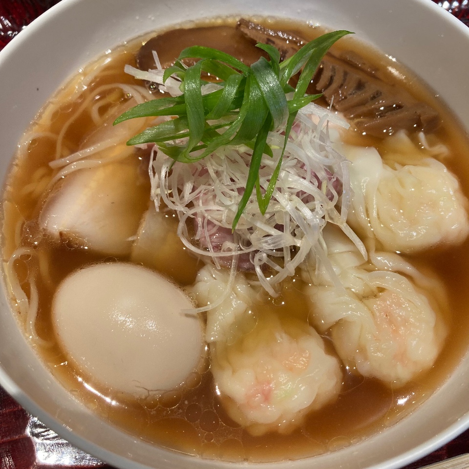 スープには丸鶏や節類などを使って和風ですっきりし、旨みの奥行きを感じる。この日は麺を2種類から選べたが、「はるゆたか」を使ってコシと滑らかさのある中太麺でいただきました。麺のツルっとした所にスープの旨みが乗って、じんわりとした後味に。特製で加わる海老雲呑はプリっとした食感を堪能。夏を前に冷やしメニューも提供していたし、季節に合わせたメニューのこれからも気になります(^o^)/