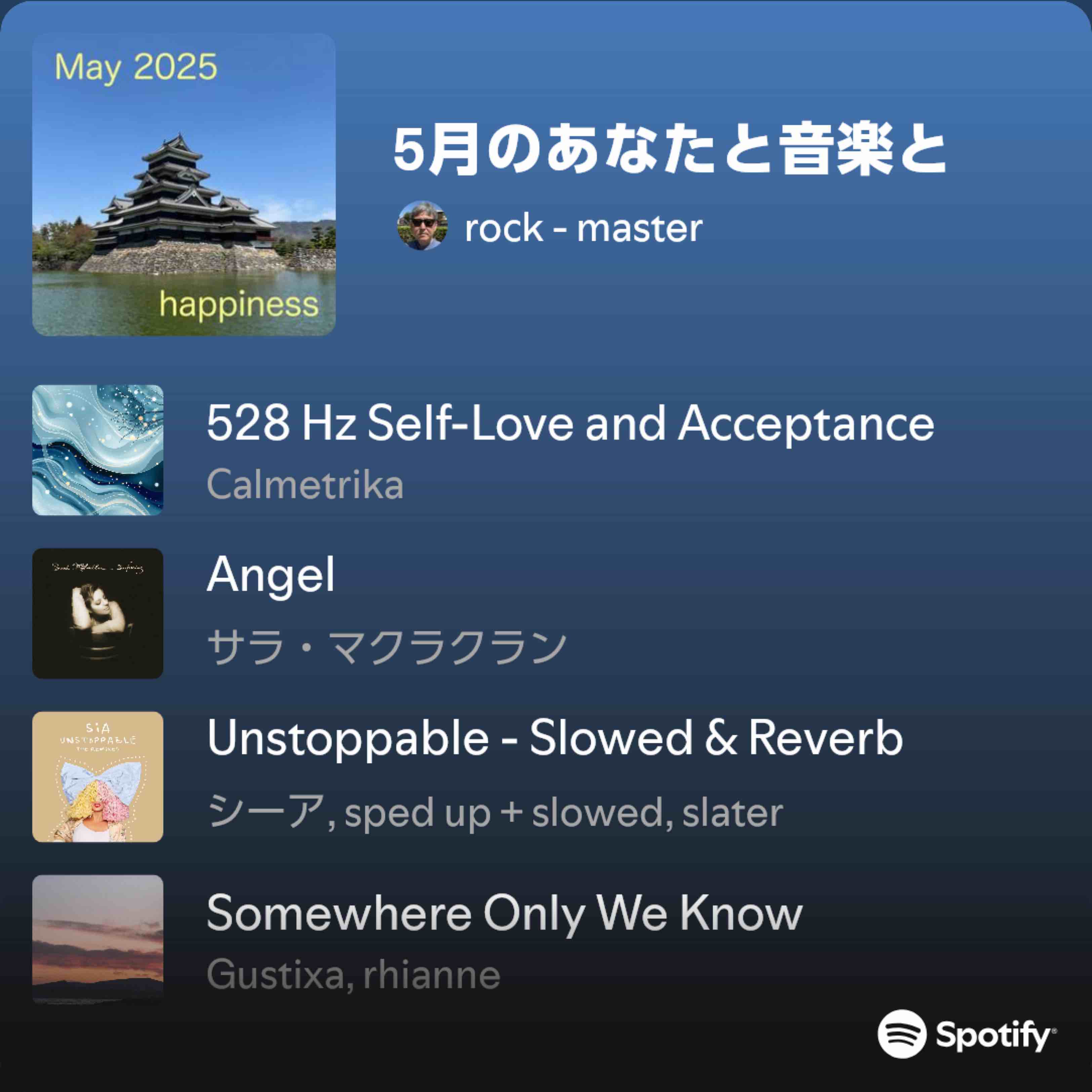 I Will - The Beatles1968「I Will」The Beatles 1968基本は待つらしい…二階堂ふみ。「HAPPY END」TENDRE 2024残るは国際金融と東アジア 藤原直哉Spotify playlist 5月のあなたと音楽と5月のあなたと音楽とPlaylist · rock - master · 25 itemsopen.spotify.com夏のプレイリスト 今日(20日)暑いのでオマケShow Time Neo - 2021 Summer 2.01 Playlist · rock - master · 30 items · 3 savesopen.spotify.com