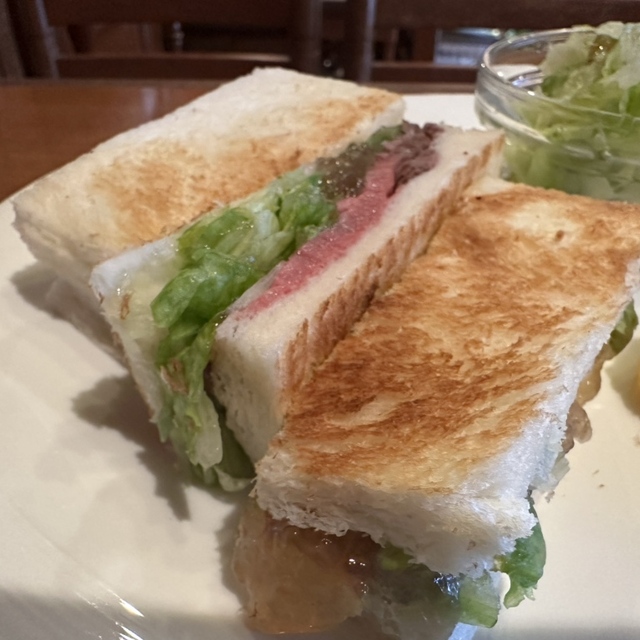 先日、嵐山で金継ぎをした帰り、「先生このあとお暇?」つってお誘いし、嵐山では有名なビーフカツサンドの喫茶店へ行くことに