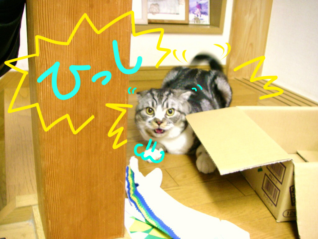 「城ケ島モーラ氏」三度♪ちょっとれお君が暇そうでしたのでイタズラをそうでぇすれお君が大の苦手な「城ケ島モーラ氏」を見えないところに仕掛けてみちゃいましたんぎゃロケット噴射の如く逃げるれお君早くっ!!早くどけてくださいよぉ('A`|||)母さんは何で平気なんですか��(=゚ω゚=;)おじさんたすけてくださいよぉ(((( ;゚д゚)))毎度のことながら母さんはれお君の顔の方がよっぽど怖いと思うんだけどなぁ母さん頼みます早くソイツをやっけてくださいヽ(TдT)ノもう壁でガリガリしませんからおねがいします(TДT)猫ブログ スコティッシュフォールド更新の励みになります↑クリックおねがいしますありがとうございます雷は平気なのにど、どうして
