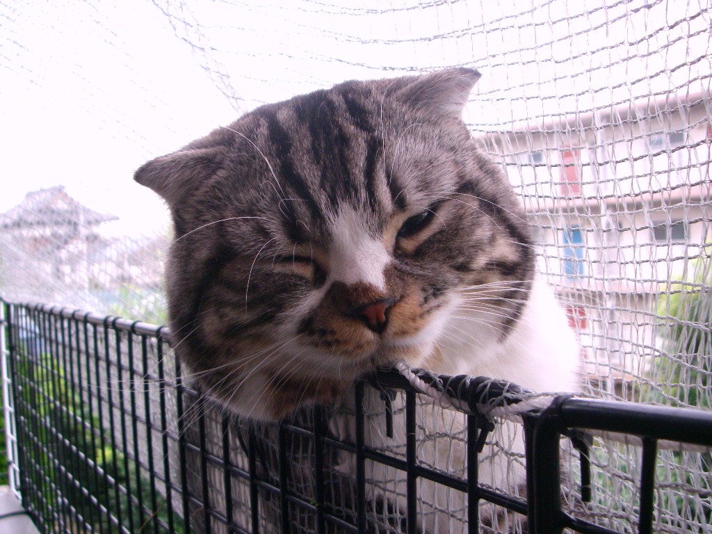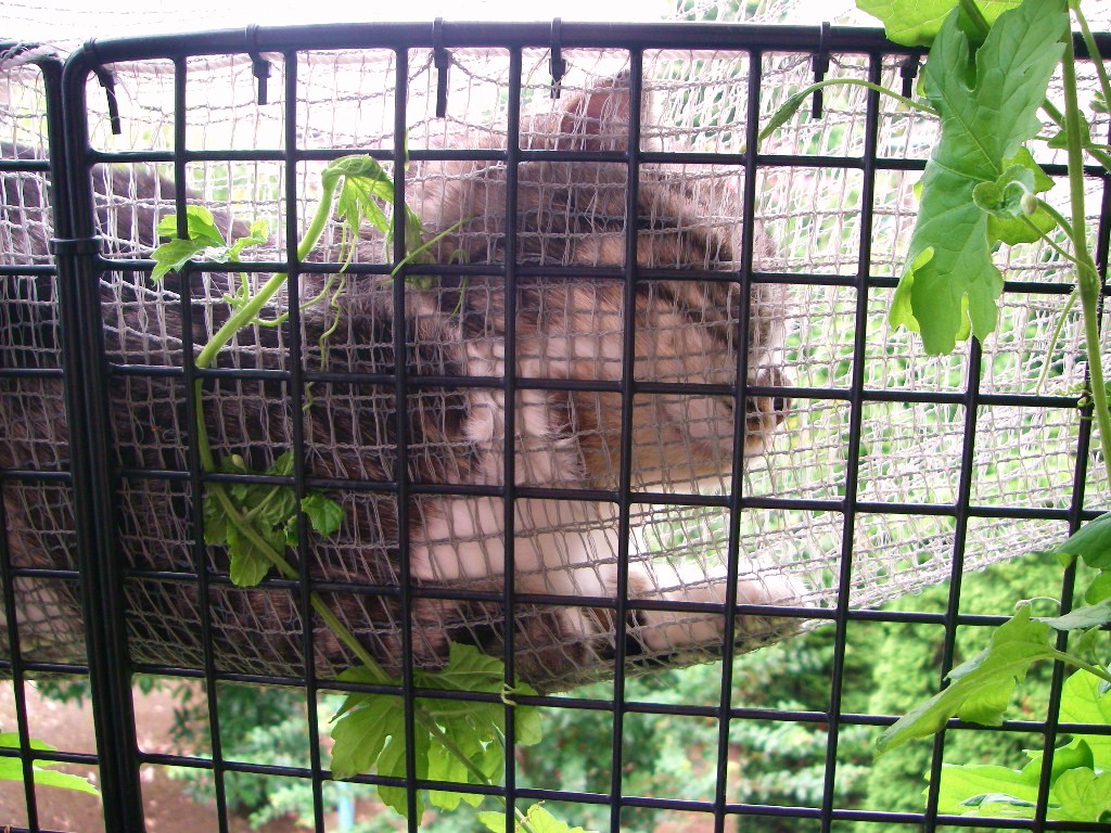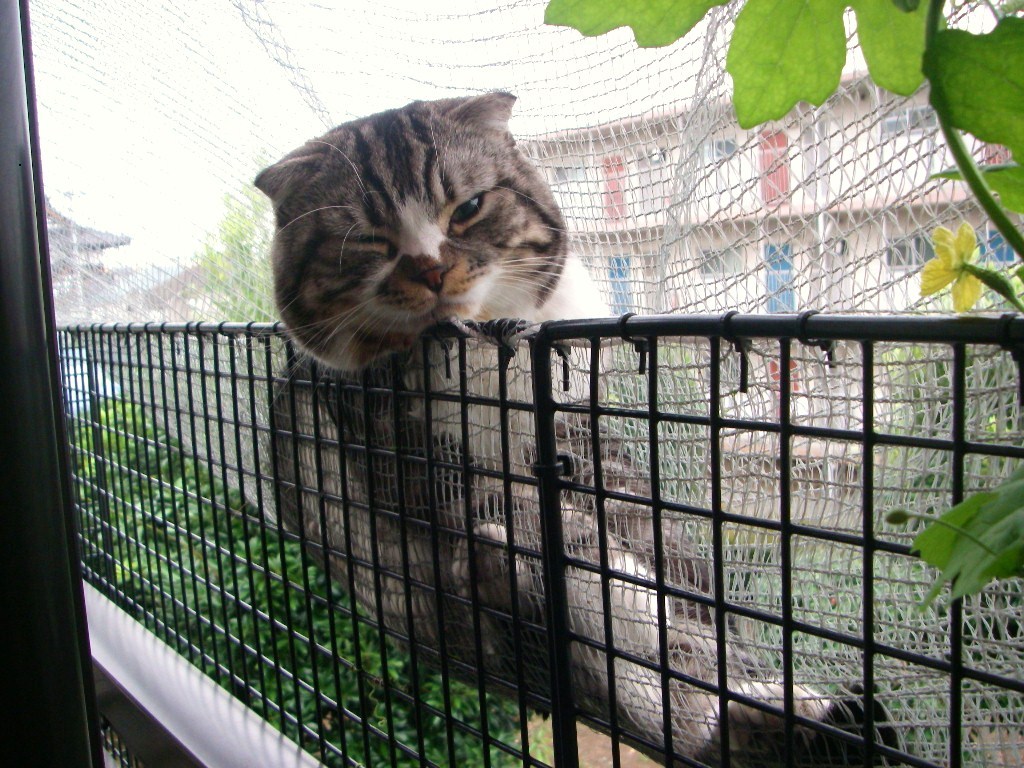 ゴーヤじゃんぐるちょっと寒いくらいがちょうど良いらしくにゃんもっくでお休み中ですご覧の様にゴーヤがだんだん内側に伸びてきているのでこのあとちょっと刈りこみます実はまだまだ衰えを見せませんここまで近くに生えていると青臭さで眠れないんじゃないかと思ったら…爆睡中さすがです今日も飛んでます(←左の記事検索で「緑のカーテン」と検索すると植えた頃の 模様が見られると思います)よよよっと場所を移動…チョキチョキちょっとスッキリしたニャンモックで朝から眠そうですなぁぐふふふふっいったい何の妄想中でしょうか猫ブログランキング人気ブログランキングへ更新の励みになります1クリックずつお願いしますありがとうございますこのまま涼しいと良いですね