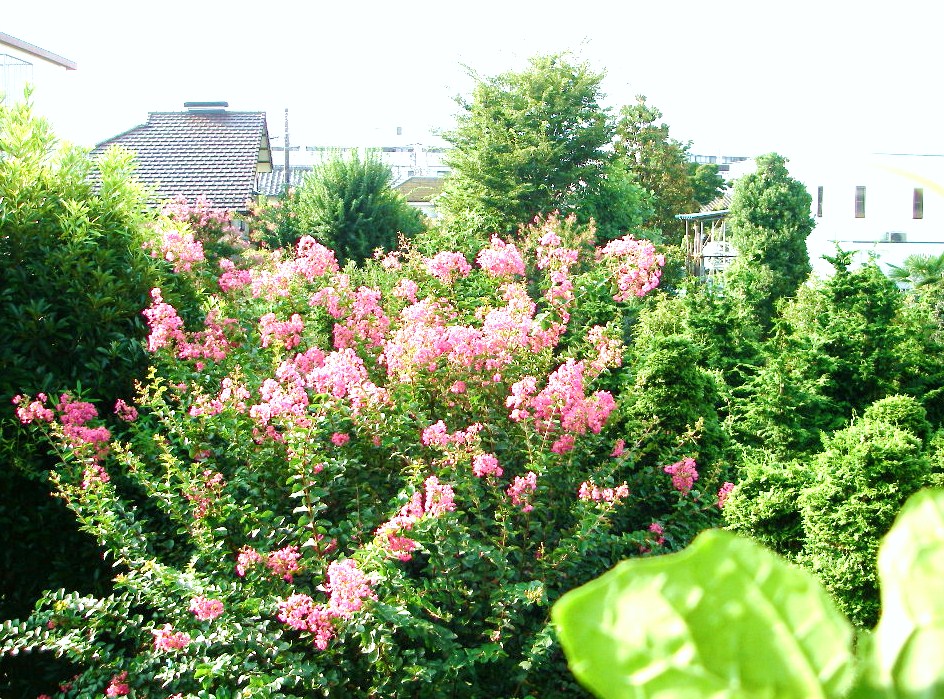 ↓未だ咲いているお隣の造園やさんのさるすべり