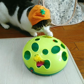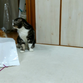 ねこじゃらし大好きれおくんと苦手なピーチくん♪