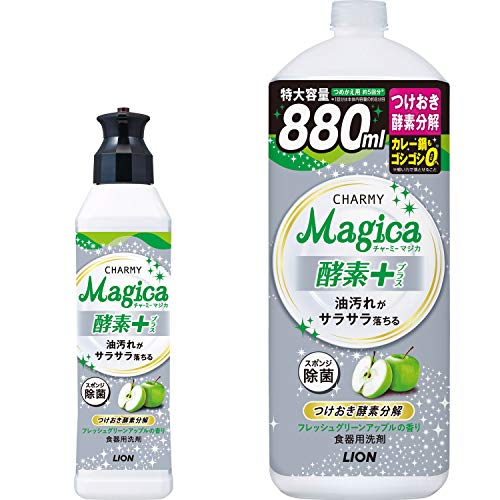 でも今回使ってみた「チャーミーマジカ 酵素プラス」はスポンジに洗剤をつけて洗うだけで一回でスッキリ![]()