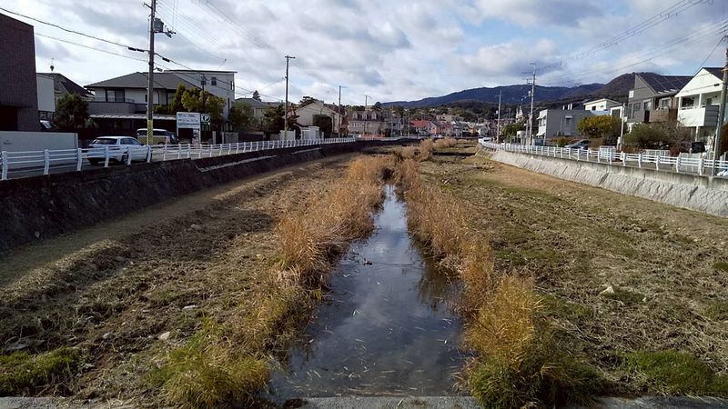 駅の南側から川に沿って西へ