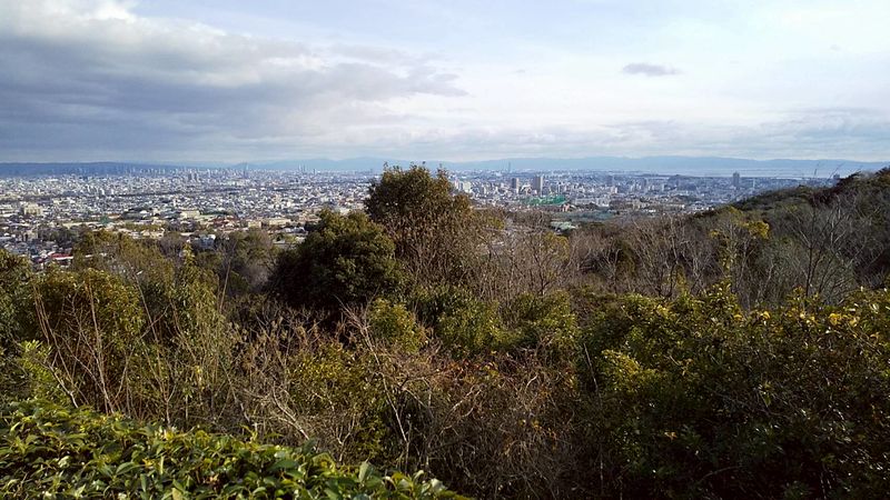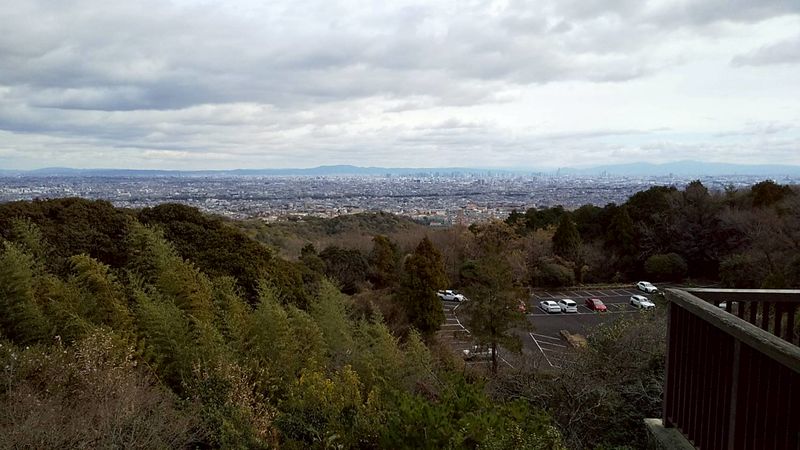 正面の山はたぶん奈良生駒山~大阪金剛山。