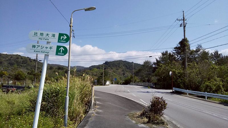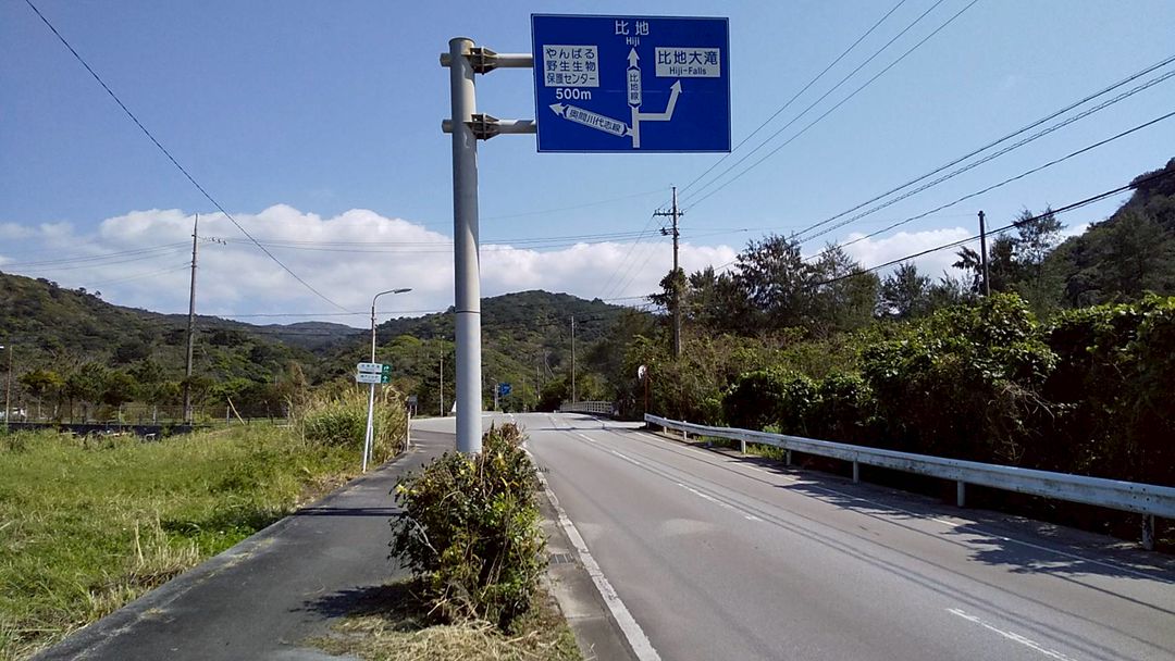 ハイキングコースが崩れたという比地大滝…