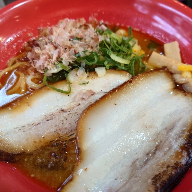そんなチャーシューが2枚トッピングされていて、デフォルトの量としては申し分ないですね。