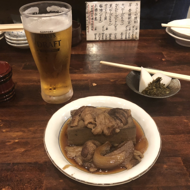 ここにきたら、とりあえずビールと肉豆腐(380円)だな。