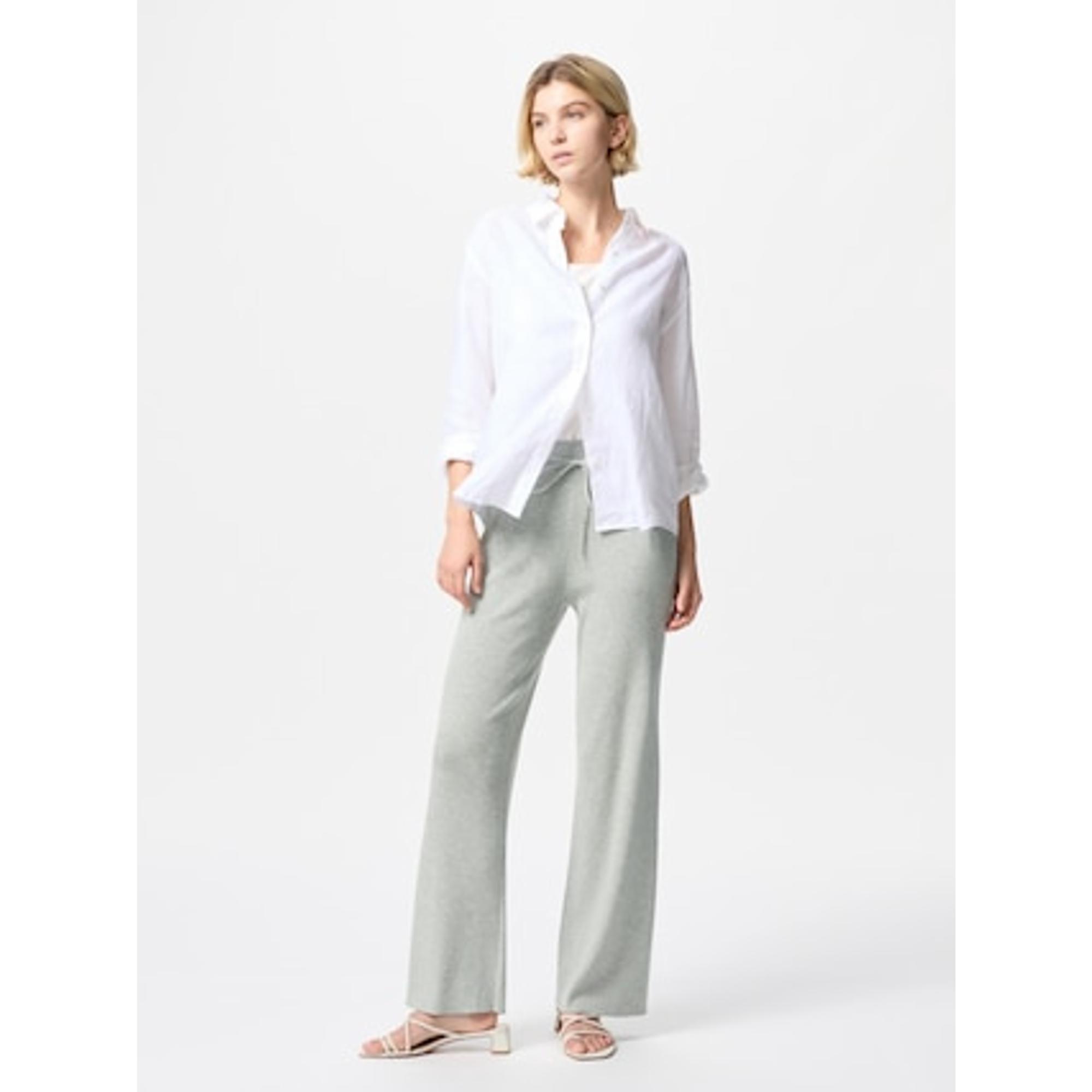 淡グリーンニット&オフホワイトパンツで春っぽ配色コーデ