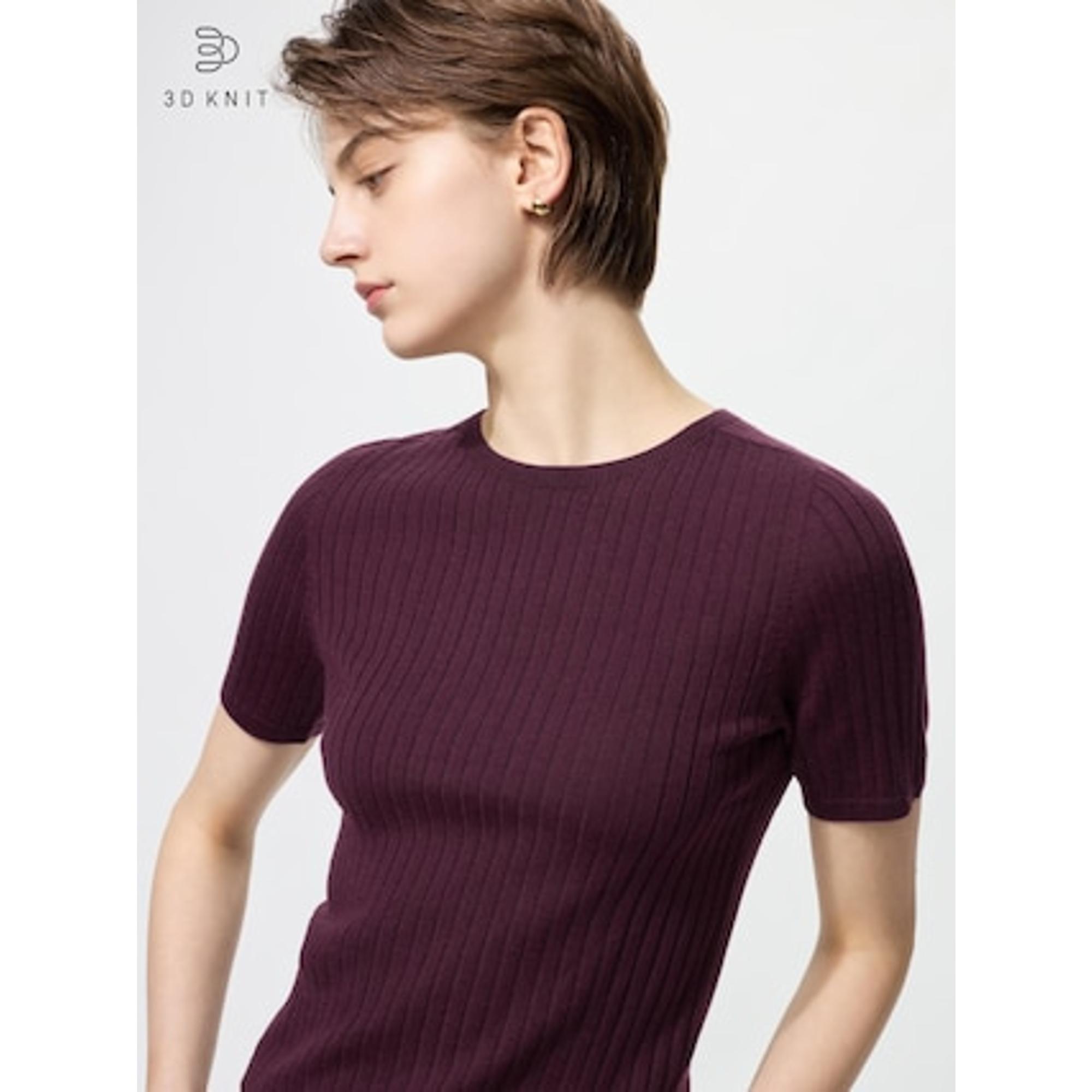 3Dメリノリブクルーネックセーター5分袖